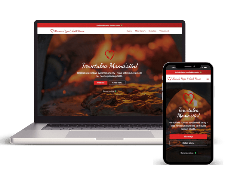 Rakensimme Mama'sille, some tilit, tilausjärjestelmän valmiiksi käyttöön, sekä teemme joka kuukausi mainosmateriaalia & sähköposti markkinointia!